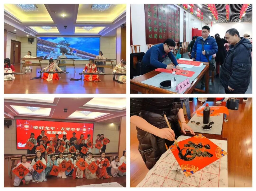 图为市七弦古琴文化研究会、孔子文化研究会开展写春联活动现场