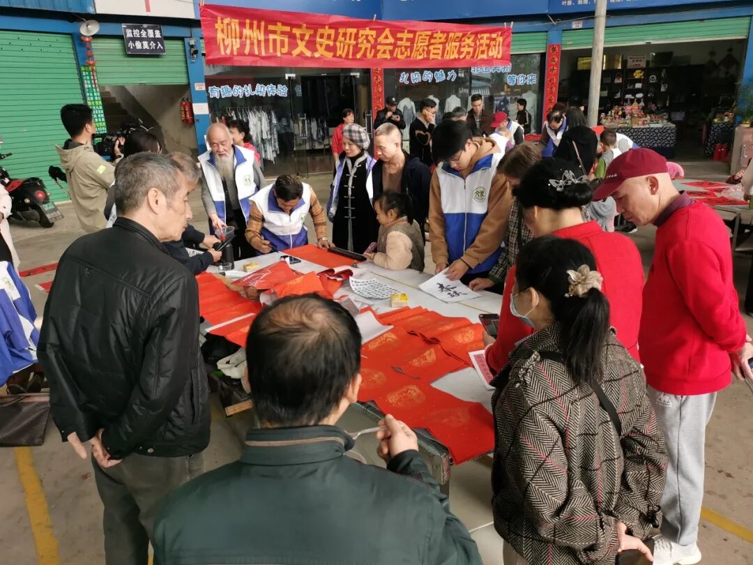 图为市文史研究会、柳宗元文化研究会开展写春联活动现场