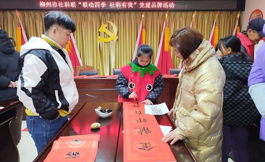1月23日,市社科联组织社科组织书法专家到鱼峰区天马街道柳依社区开展“写春联送祝福”活动。参与群众300多人,活动送出了春联、“福”字600多幅。
