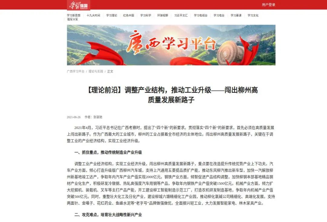 编者按:10月18日,柳州市机关党建网刊发了市社科联文章《党建领航柳州社科谱新篇——从在学习强国平台阅读量双破“百万”谈起》,现全文转发如下: